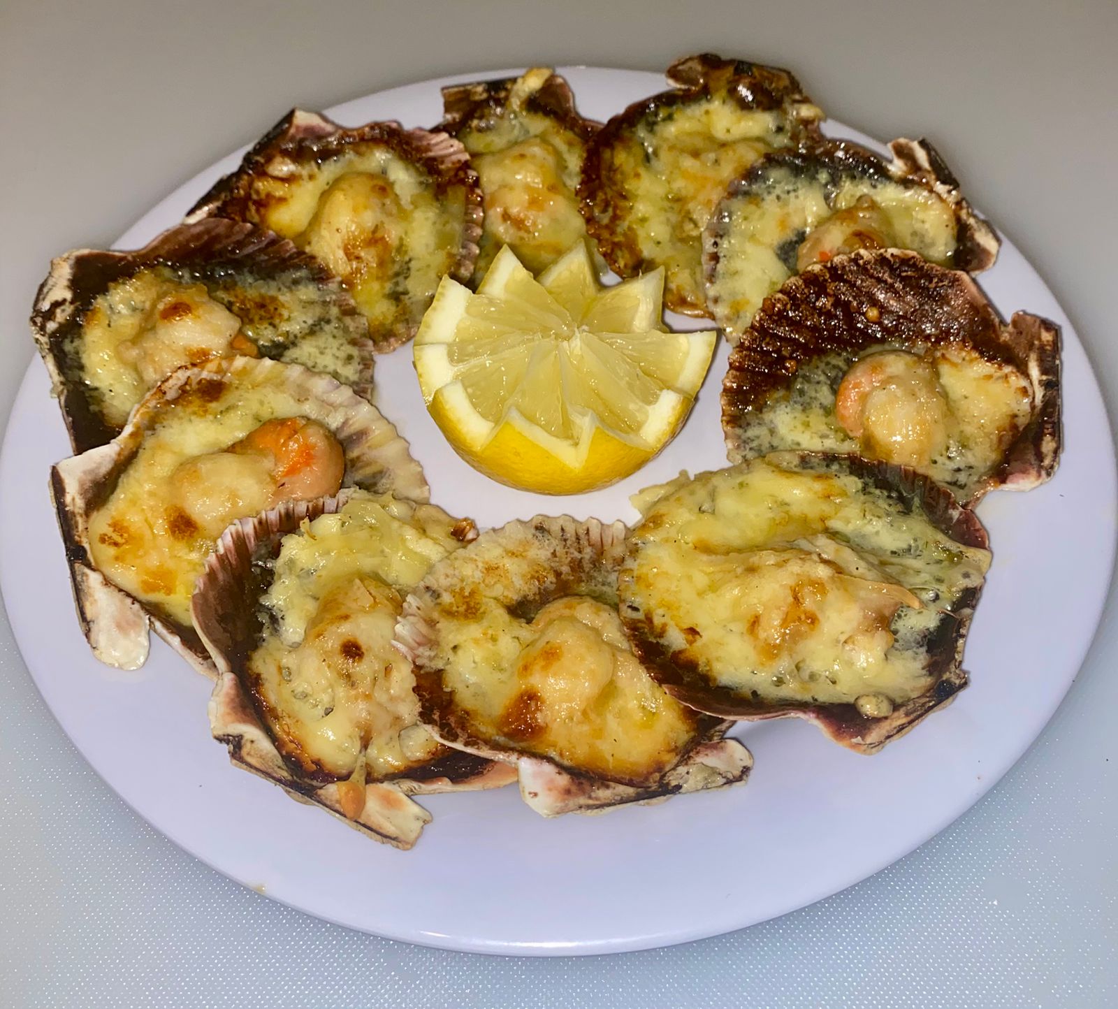 Ingredientes: Ostiones en su concha, queso parmesano, crema y mantequilla.